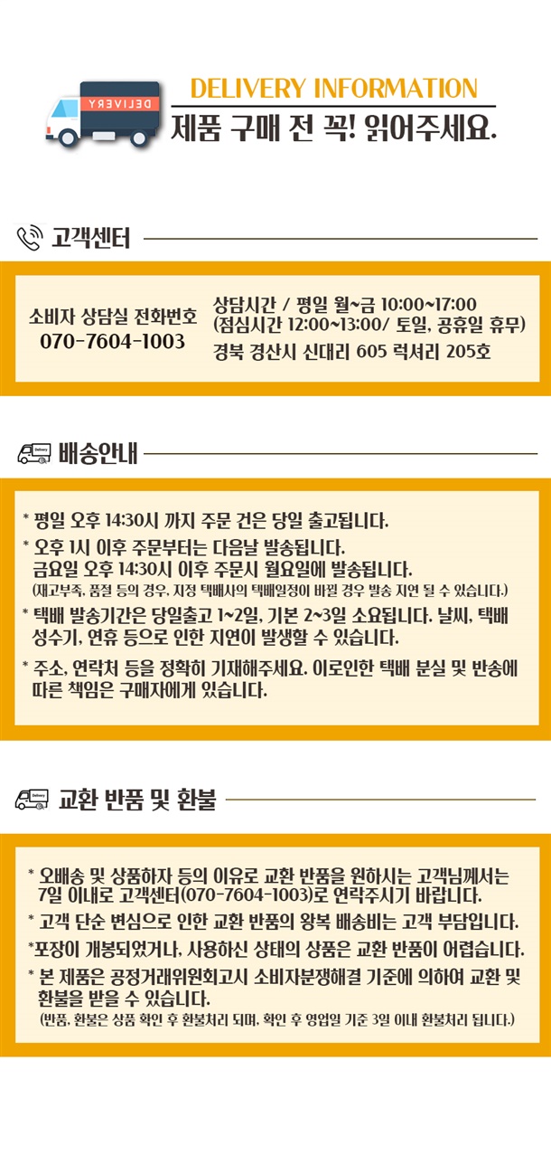 · 상품 불량 사유와 사진을 남겨 주시면 빠른 처리가 가능합니다.